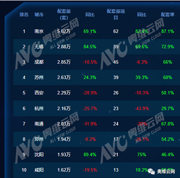 精裝修市場中新風系統配套城市接近90個,大都分布高等級城市(新一線、二線城市)。據奧維云網(AVC)地產羅盤3.0數據顯示,截至2021年8月底,新一線城市配套規模23.9萬套,其次是二線城市配套規模16.9萬套。累計份額達76.5%,同比增長6.0%。TOP5城市中,新風配套規模累計達16.3萬套, 其中南京以5.6萬套規模位居第一,同比增速全國第一;其次是無錫、成都、蘇州、西安等城市新風配套規模在2萬套以上,均領先于其他城市。從配套率來看,TOP10城市新風的配套率接近60%。其中配置率超過60%的城市有4個,多集中在華東區域。分別是南京(87.1%)、無錫(72.9%)、成都(66%)、蘇州(68%)。